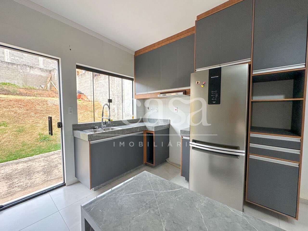 • 02 quartos, sala de estar integrada com cozinha, banheiro social, lavanderia, amplo quintal, garagem coberta